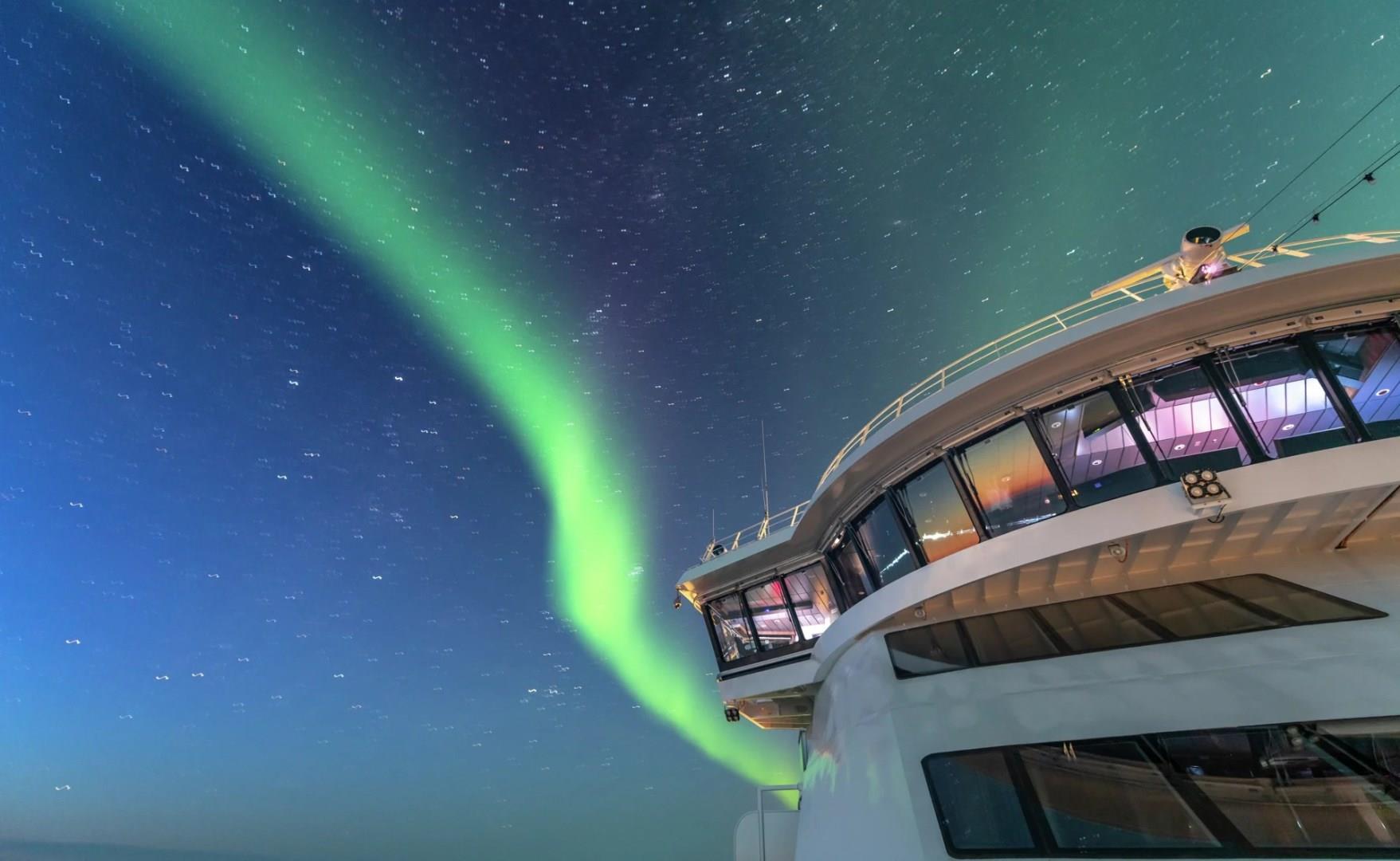 The stunning scenery is reflected in a rich and comfortable interior design. Scandinavian materials from nature, such as granite, oak, birch and wool are used to create relaxed and stylish cabins and public areas. All cabins are outside cabins, of which 50% have private balconies, and aft suites feature private outdoor hot tubs with spectacular views.